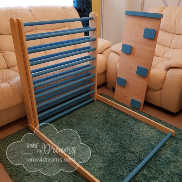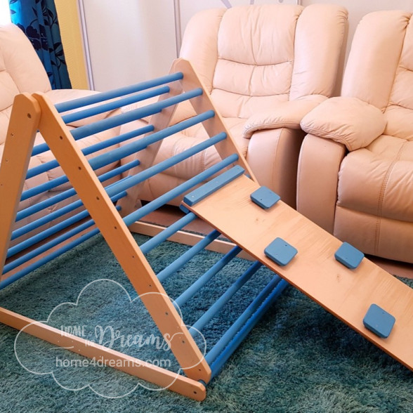 El triángulo trepador se envía desmontado. Juntar el triángulo es fácil, las instrucciones de montaje se incluyen en el paquete. El triángulo se dobla y ocupa poco espacio.